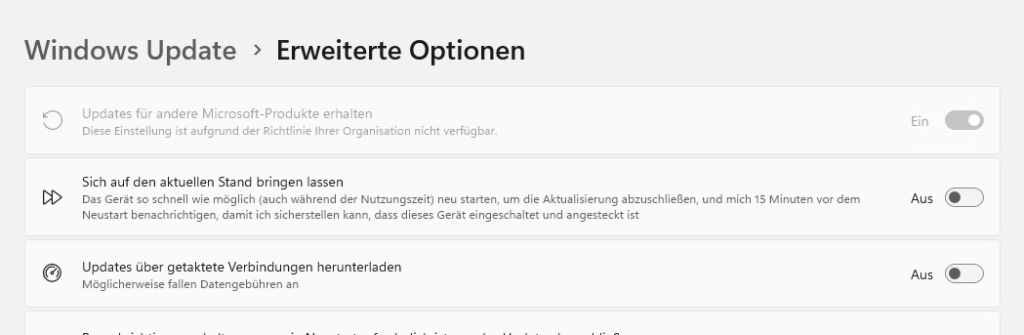 Auf dieses Problem bin ich zunächst über einen LinkedIn-Beitrag gestolpert. Unternehmen verwenden üblicherweise die Serverrolle Windows Server Update Services, um Aktualisierungen für Microsoft-Produkte zentral steuern zu können. Es scheint hierbei zunächst so zu sein, dass Windows Server 2025 die Einstellungen, die über Gruppenrichtlinien gesetzt werden, ignoriert und einfach eigene Standardeinstellungen verwendet. Dies ist daran erkennbar, dass trotz konfigurierter Einstellungen weiterhin alle Optionen verfügbar sind (normalerweise sind einzelne Funktionen ausgegraut).